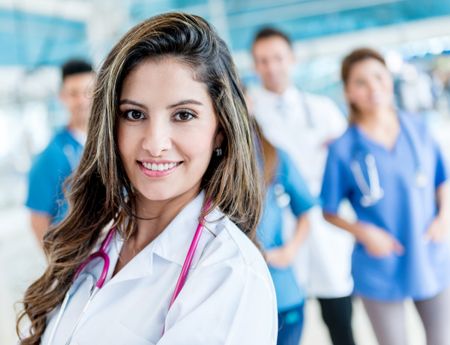 Female doctor at the hospital with a group of medical staff