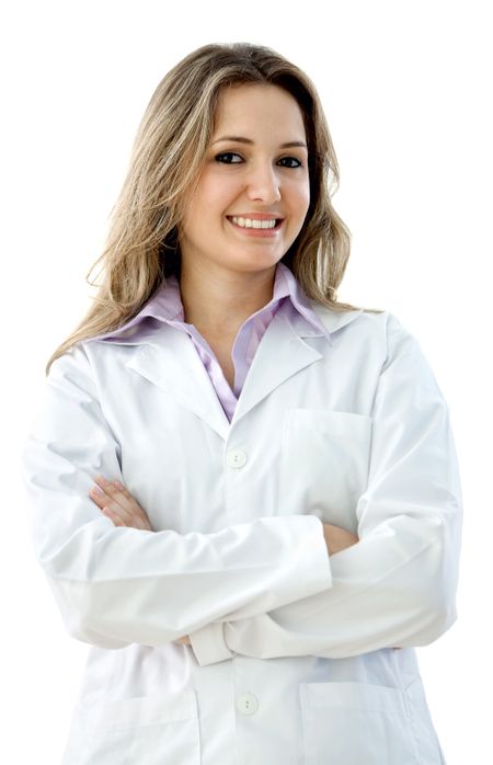 Female doctor portrait smiling isolated over white