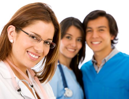 female doctor smiling with her nurse assistants
