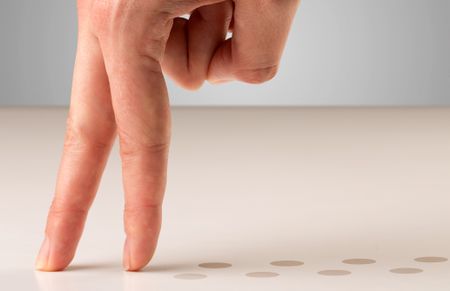 Female fingers walking with dots behind them