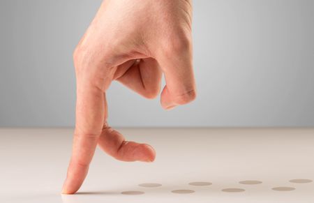 Female fingers walking with dots behind them