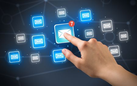 Female hand touching unread mail icon with more envelope icons around it