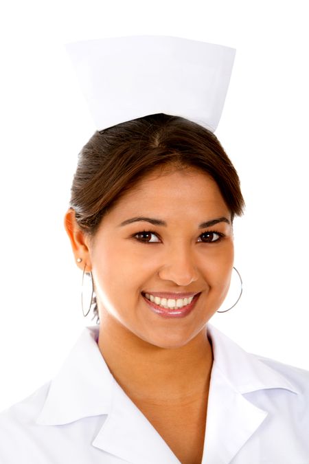 Female nurse smiling ? isolated over a white background