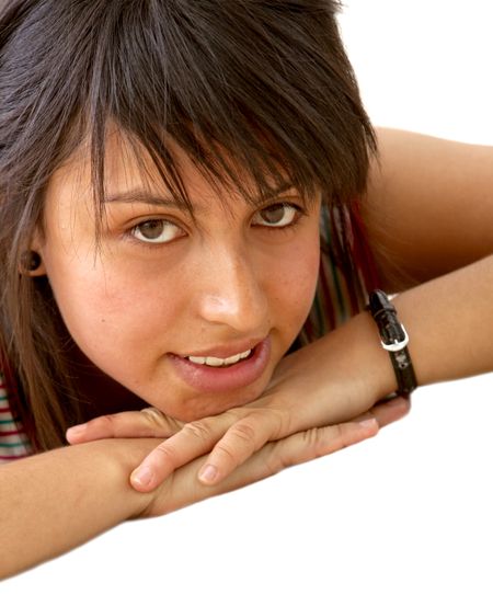 Female portrait isolated over a white background