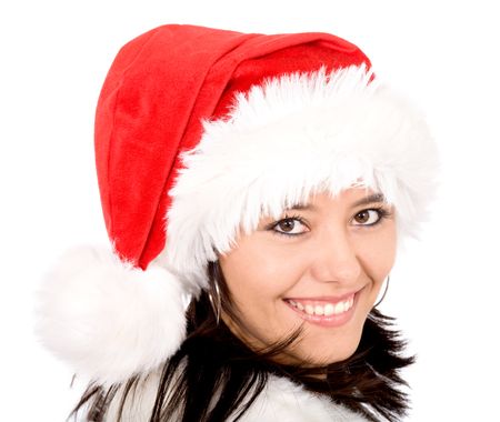 female santa portrait looking cute and smiling isolated over a white background