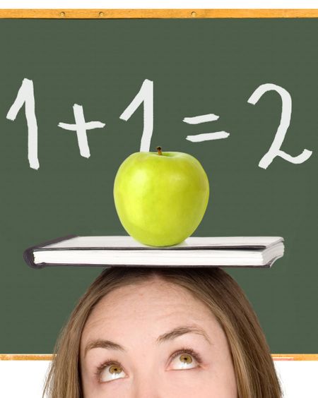 female student or teacher in front of a blackboard