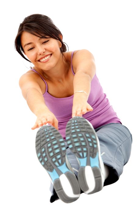Fit woman stretching - isolated over a white background