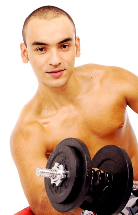 fitness instructor lifting weights - isolated over a white background