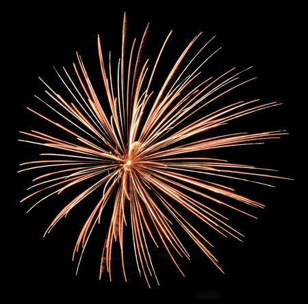 Flowerlike burst of reddish-orange fireworks