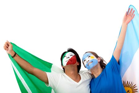 Football fans with painted faces isolated over a white background