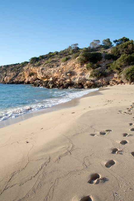 Footprints at Cala Tarida Beach; Ibiza; Spain