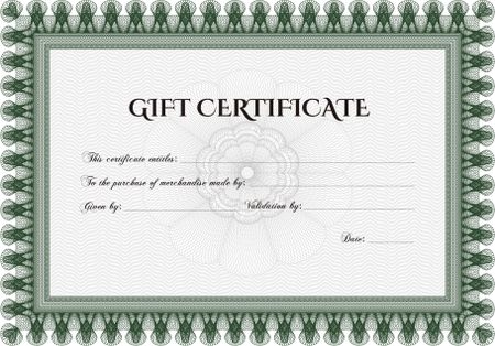 Formal Gift Certificate template. With complex background. Elegant design. Detailed.