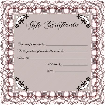 Formal Gift Certificate template. With guilloche pattern. Vector illustration.Excellent design.
