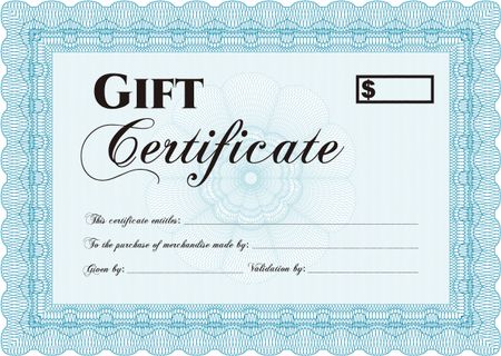 Formal Gift Certificate template. With guilloche pattern. Vector illustration. Retro design.