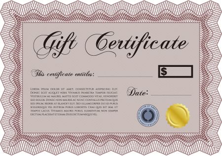 Formal Gift Certificate template. With guilloche pattern. Retro design.