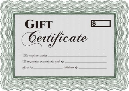Formal Gift Certificate template. Nice design. With great quality guilloche pattern. Detailed.