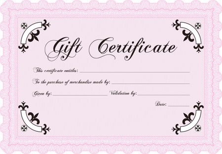 Formal Gift Certificate template. Vector illustration. Elegant design. With guilloche pattern and background.