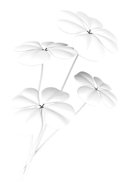 four leaf clovers in white made in 3d