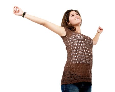 freedom- casual woman with her arms open isolated over a white background