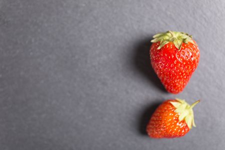 Fresh ripe strawberries on black slate
