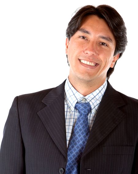 Friendly business man portrait smiling over a white background
