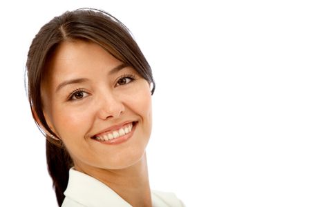 Friendly business woman portrait smiling over a white background