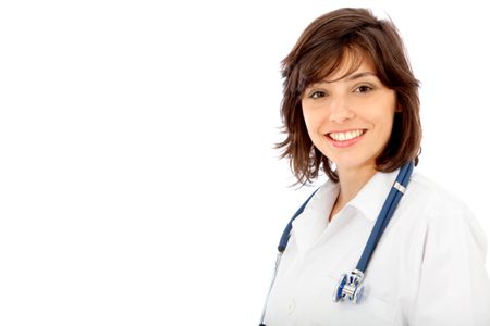 friendly female doctor smiling isolated over white