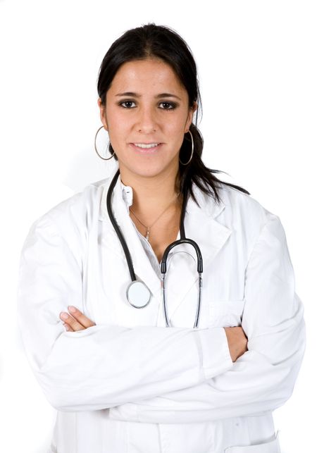 friendly female doctor over white