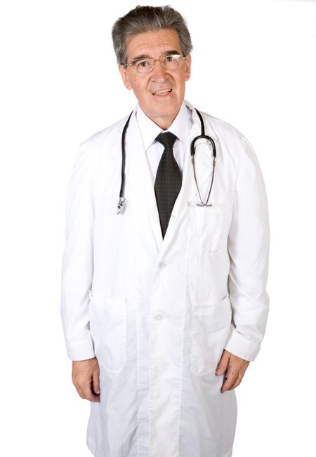 friendly male doctor over white