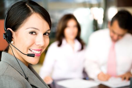 Friendly woman working as a telemarketing agent