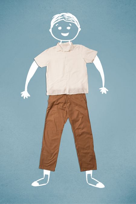Funny cute smiley hand drawn character in casual clothes