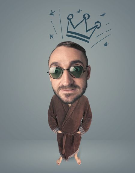 Funny guy with big head and drawn crown over it