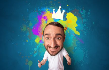 Funny person with big head and drawn crown