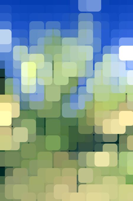 Geometric abstract of city lights, with many rounded pastel squares overlapping on a grid for 3-D effect, for decoration and backgrounds with themes of green environment, urban order, and harmony