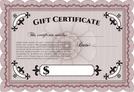 Gift certificate red template with complex design.