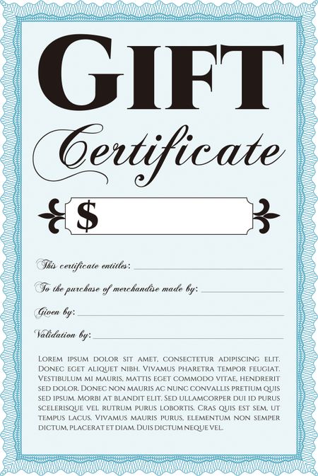 Gift certificate template. With complex linear background. Vector illustration.Elegant design.