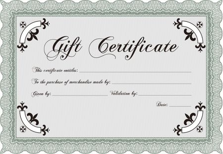 Gift certificate template. Elegant design. Printer friendly. Customizable, Easy to edit and change colors.