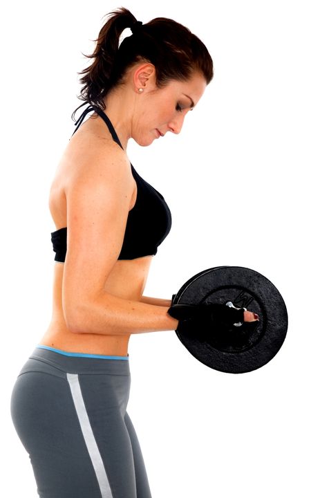 girl doing freeweights - isolated over a white background