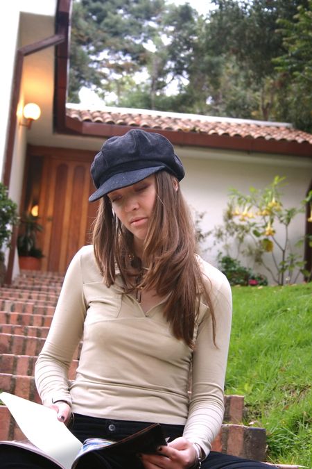 girl doing some revision outside her house