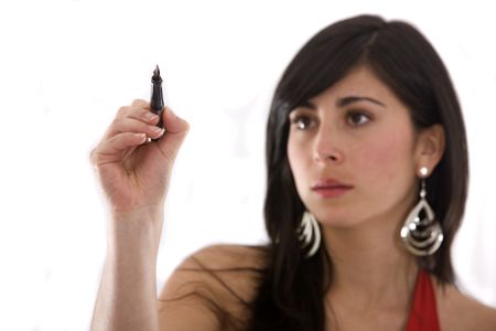 girl drawing on screen isolated over a white background