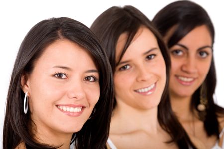 girl friends faces smiling - isolated over a white background