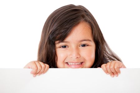 Little girl holding a banner - isolated over a white background