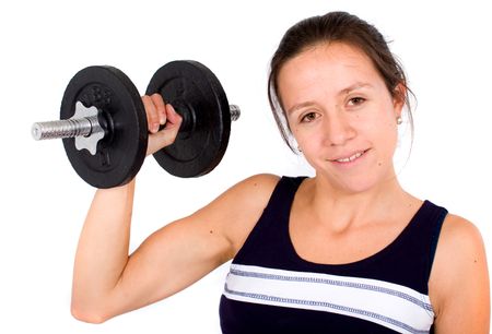 girl lifting freeweights - isolated over a white background