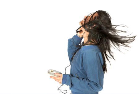 girl listening to music over a white background