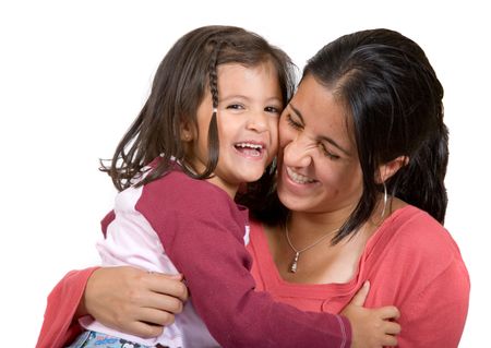 girl with her mum having a laugh over a white background