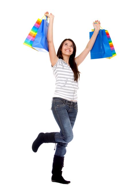 Girl with shopping bags isolated over a white background