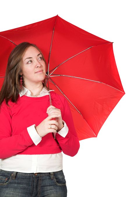 girl with umbrella over white