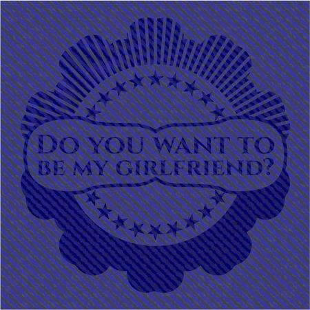 Do you want to be my girlfriend? badge with jean texture