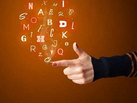 Glowing letters coming out of gun shaped hands