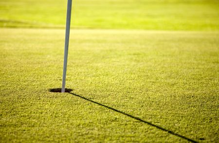golf hole at sunset time - focus is on the hole